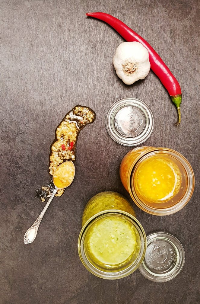 In meinem Kühlschrank befindet sich daher immer ein Glas fein gehackten Knoblauchs in Olivenöl, das habe ich von der spanischen Küche abgeguckt und es ist unglaublich praktisch. Wann immer ich Knoblauch benötige greife ich zu meinem Knoblauchöl.