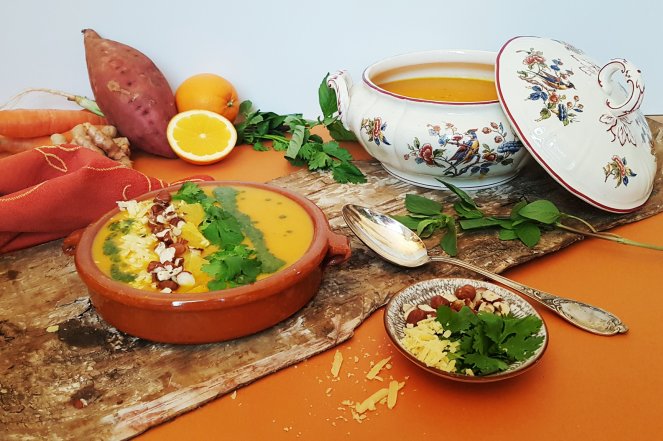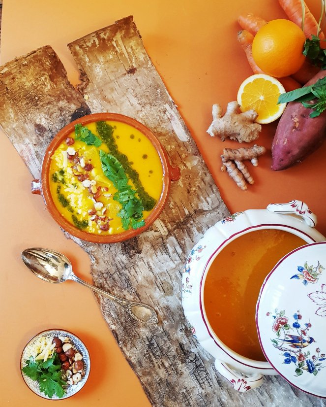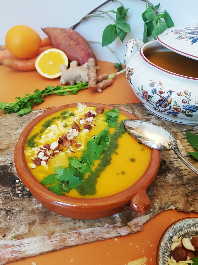 Zu Hause am Herd, in trockenen Tüchern, nahm das Süppchen ganz automatisch Formen an und heraus kam diese leuchtende Komposition aus leckeren vitalisierenden Aromen.