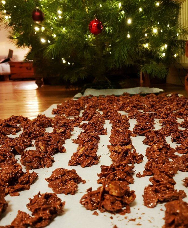 Ganz knapp vor den Feiertagen habe ich noch eine schnelle Idee aus der Kategorie kleine Aufmerksamkeit zu Weihnachten für euch. Weihnachtlich weil Schoko-Knusperberge mit Lebkuchenaroma. Schnell weil innerhalb weniger Minuten auf dem Blech. DIY weil völlig unkompliziert selbst zu machen, daher auch super mit Kindern.