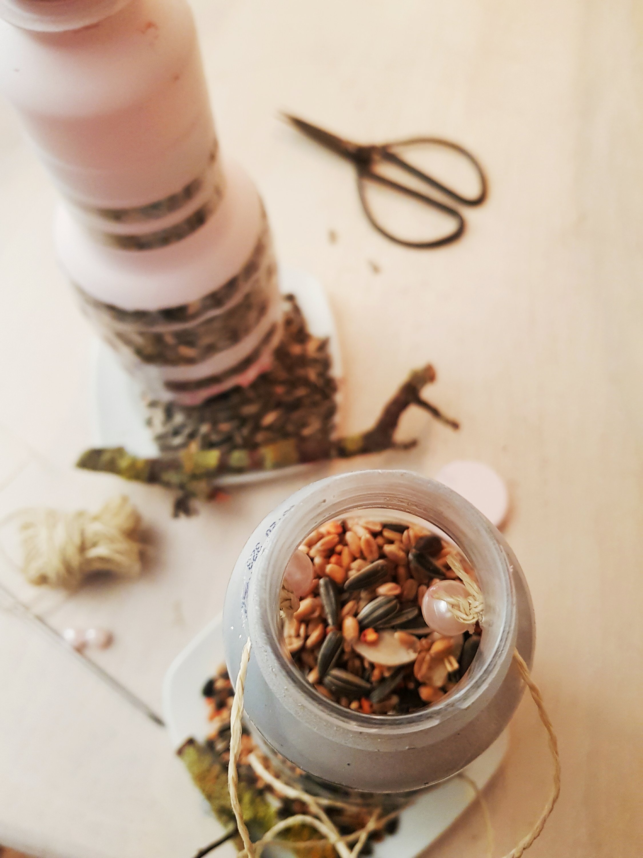 Meine Futterspender hängen nun schon eine Woche draußen und ich kann euch sagen, da ist richtig was los! Leider habe ich es bisher nicht geschafft, die kleinen Vögel inflagranti zu fotografieren, denn sie hauen schneller ab, als ich den Finger auf den Auslöser tippen kann. Wenn ich es schaffen sollte, zeige ich euch die Fotos bei Instagram.