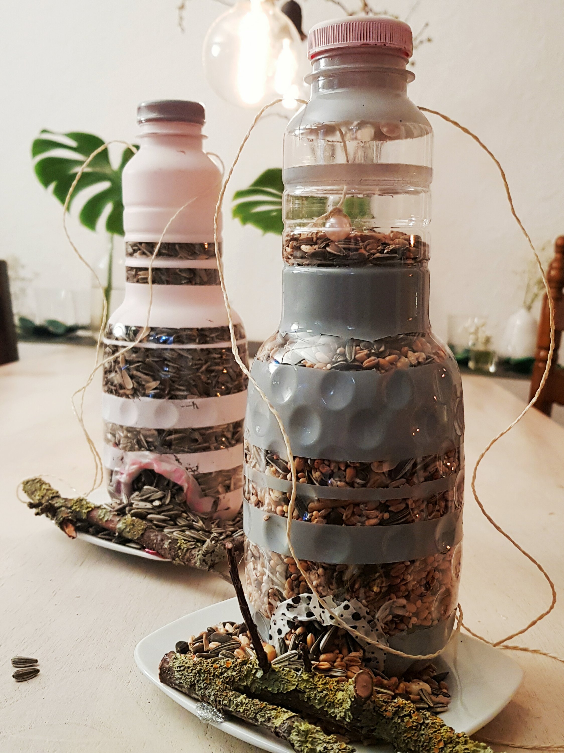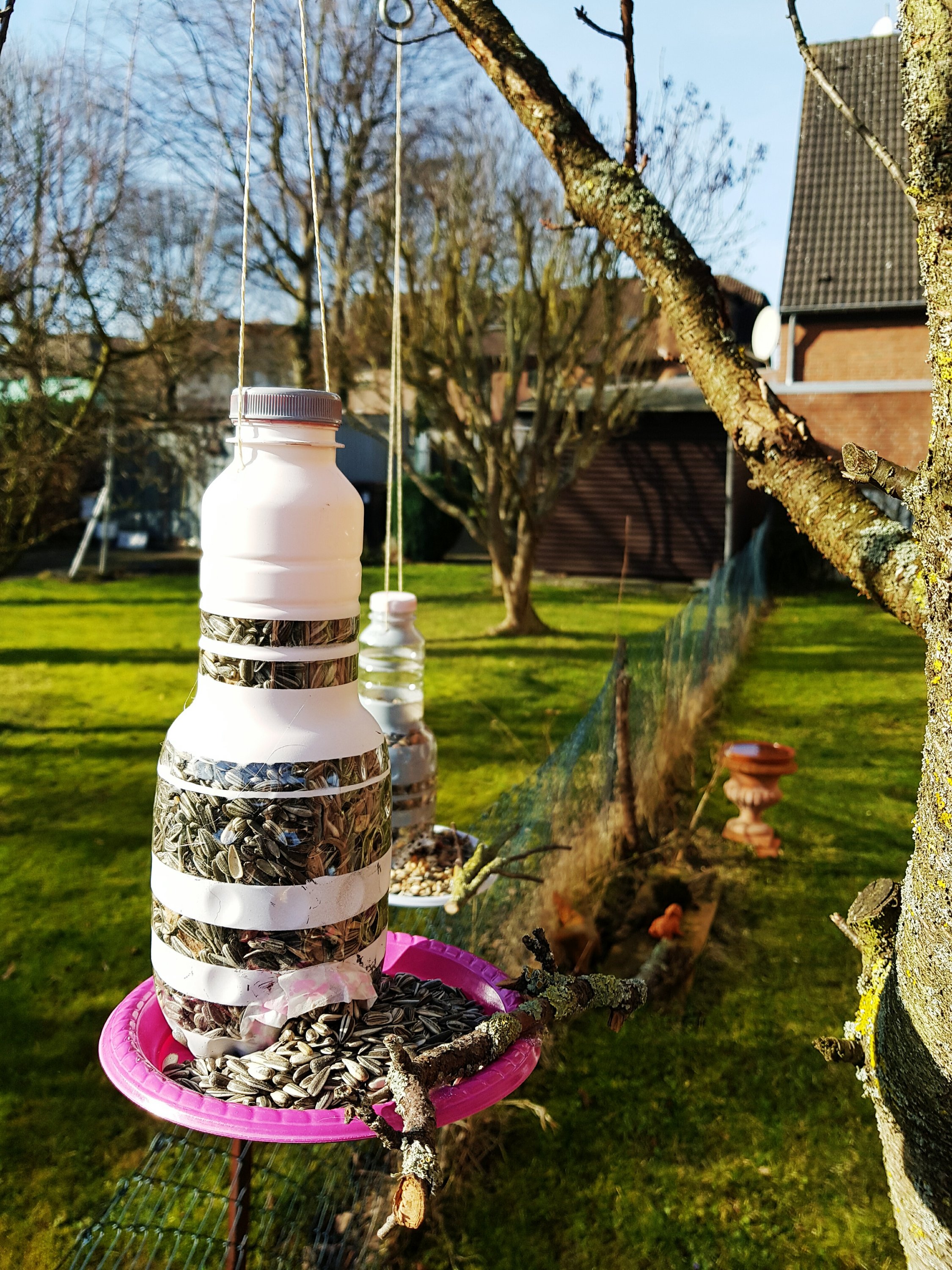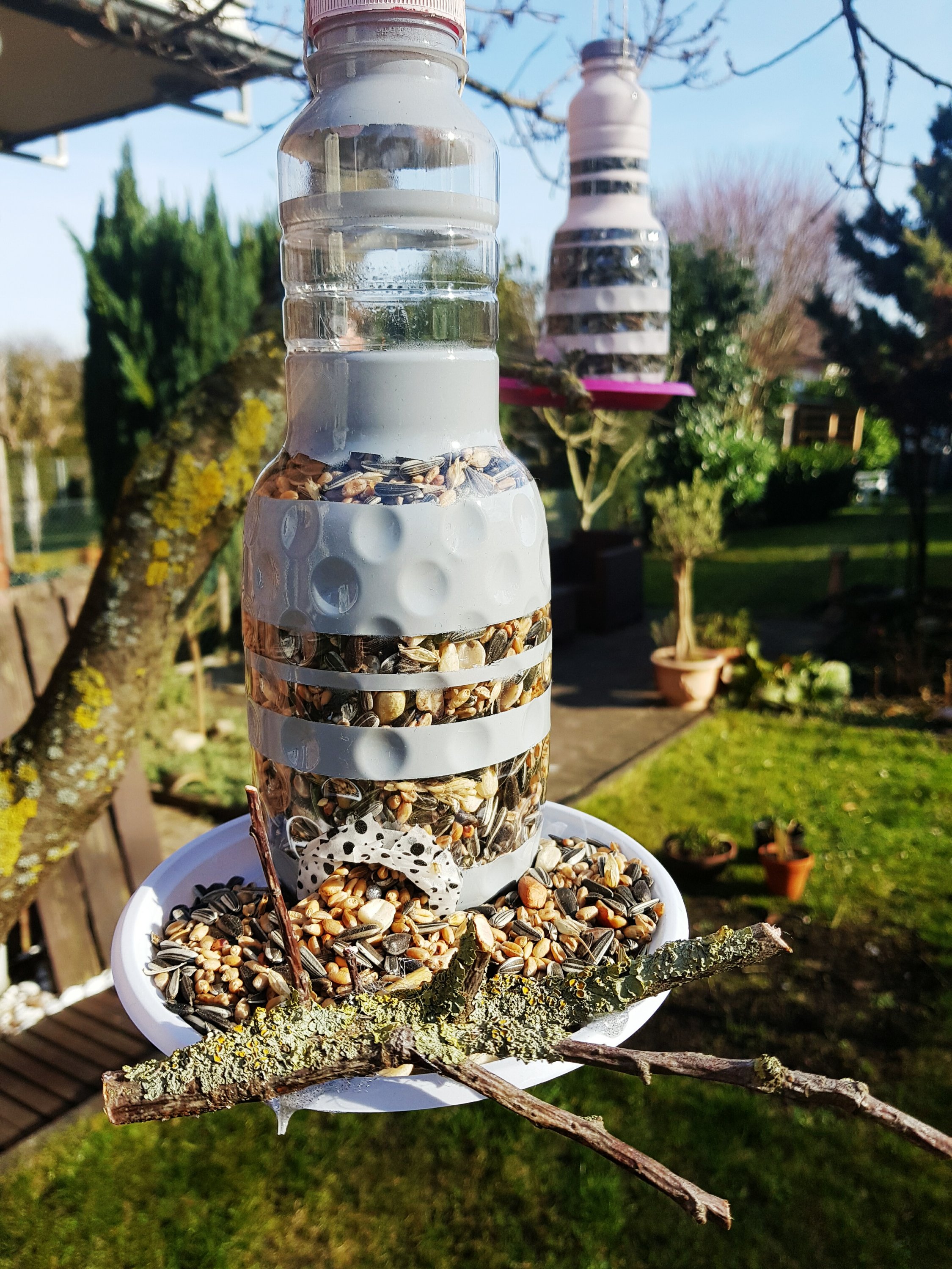 Vogelfutter-Spender aus Kunststoff-Flaschen