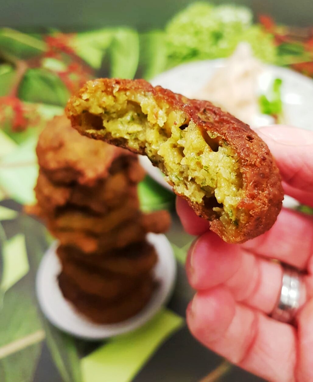 Dieses Rezept enthält ein rauchig gewürztes Mus aus Kichererbsen mit orientalischen Gewürzen, einer Menge Kräutern und einer ordentlichen Portion Knoblauch, das zu kleinen scharfen Kugeln oder Nuggets knusprig ausgebacken wird.