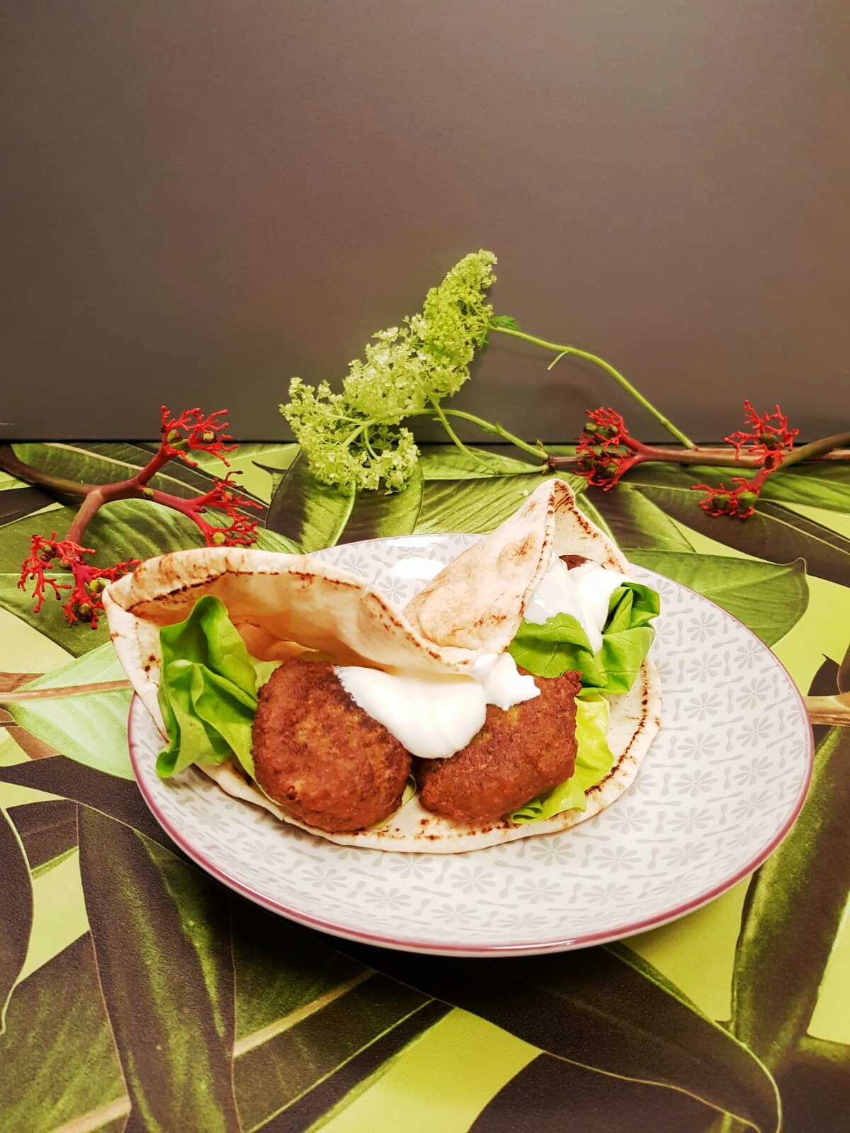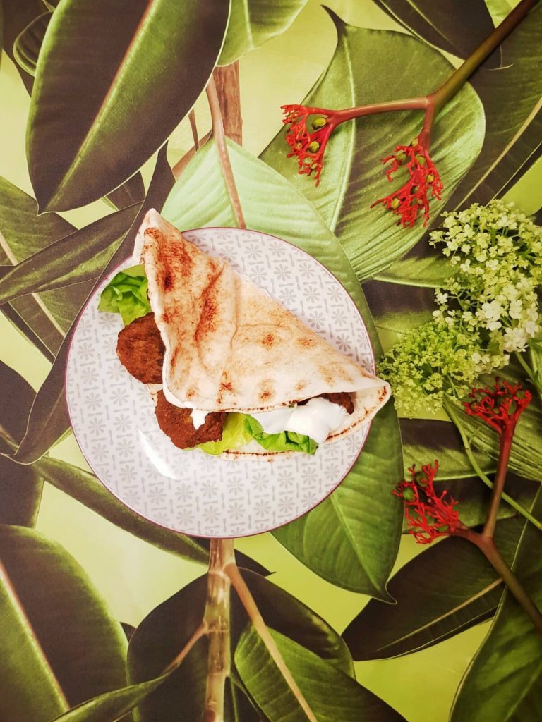 Da Falafel viel aromatischer sind als Kroketten, gehen sie nicht nur als Beilage, sondern bilden eher den Mittelpunkt eines Gerichts. Sie begegnen einem meist auf der Karte des türkischen Imbiss als vegane Alternative zum Döner, eingehüllt in eine Brottasche neben Salat und Tsatsiki oder scharfer Sauce. Es schmeckt auch prima als Krönung auf buntem Salat oder als Snack mit einem Dip aus süßer Mango, selbstgemachtem Humus (ein Rezept dafür findest du hier – bei meinem Salatliebling mit gebackenen Kichererbsen, Humus und Tomatensalat) oder mit Sesamsauce.
