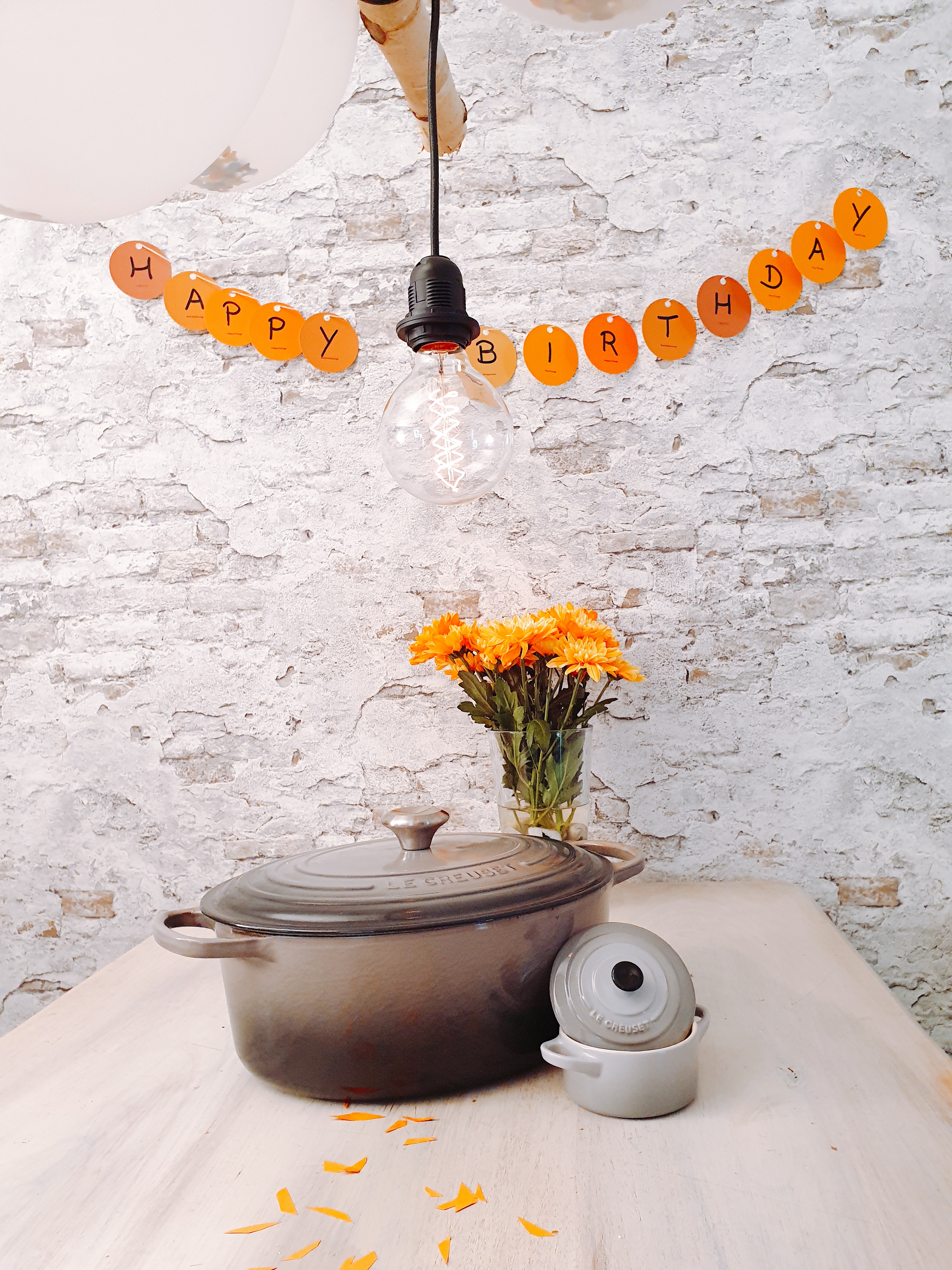 Und kochst du mit Leidenschaft, dann stehst du auf gute scharf geschliffene Messer, hochwertige Küchengeräte und professionelles Kochgeschirr. Mein Glück, dass ich die wunderbarsten Freunde habe, die mir zum Geburtstag den schönsten Bräter ever herangewuchtet haben, auf den ich schon laaaaange ein Auge geworfen hatte (mir aber intensiv und unter Schmerzen verkniff).