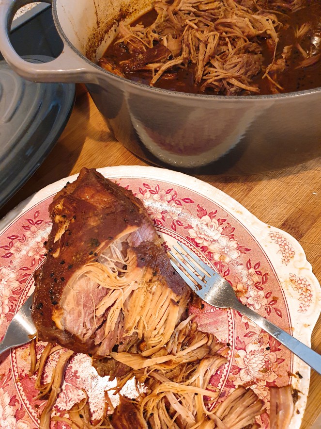 Leider hatte ich keine Fotos für euch gemacht. Ich wusste auch noch gar nicht so ganz genau um die Zubereitung und Garzeiten von Pulled pork ohne Smoker und inspirierte mich ein bisschen hier und da im Netz. Jetzt ist aber alles klar. Bei der nächsten Familienfeier eine Woche später für meinen Papa hatte ich den Dreh komplett raus.