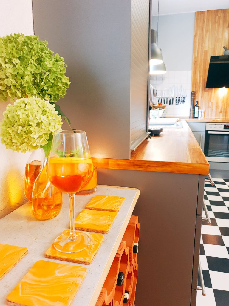Die Idee mit einem Untersetzer für jeden entstand bei uns schon vor ein paar Jahren auf dem Flaschenregal/Sideboard im Essbereich zwischen Wohnzimmer und Küche und ist somit so geschickt platziert, dass alle ständig daran vorbeilaufen. Trinken nicht vergessen! Außerdem befinden sich die sauberen Gläser unmittelbar in dem Rolladenschrank daneben – es kann niemand mehr behaupten, er habe sein aktuelles Glas nicht gesehen. Und Spüle und Spülmaschine bilden für die Entsorgung dessen die direkte Nachbarschaft. Ein ähnliches Plätzchen findet sich bei euch mit Sicherheit auch.