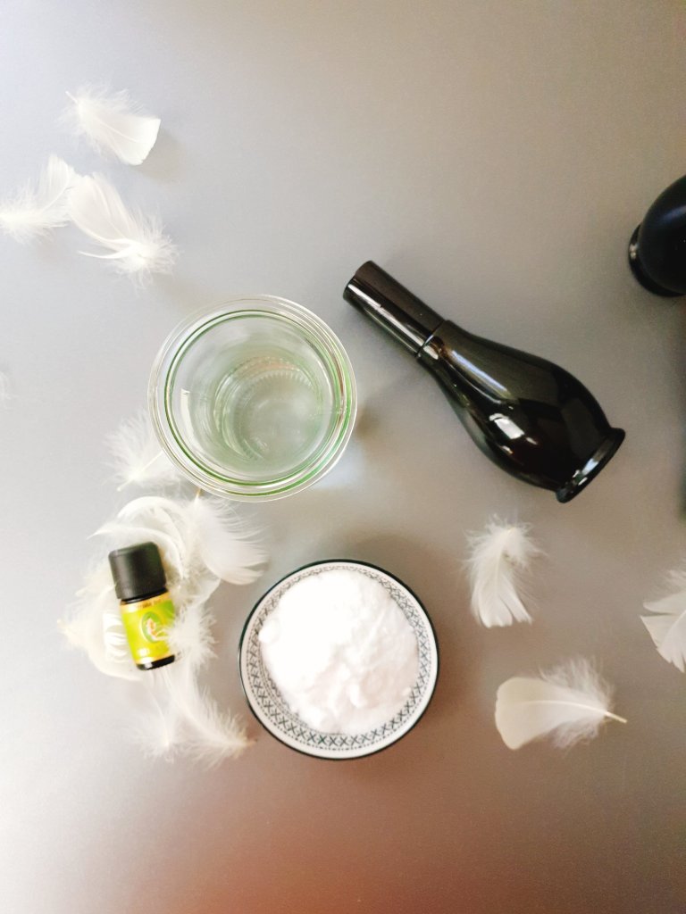 So ein Deo ist nun wirklich kinderleicht selbst herzustellen. Neben einer Sprühflasche braucht man nur etwas Natron, ätherisches Zitronenöl und Wasser. Ja genau, das war`s schon.