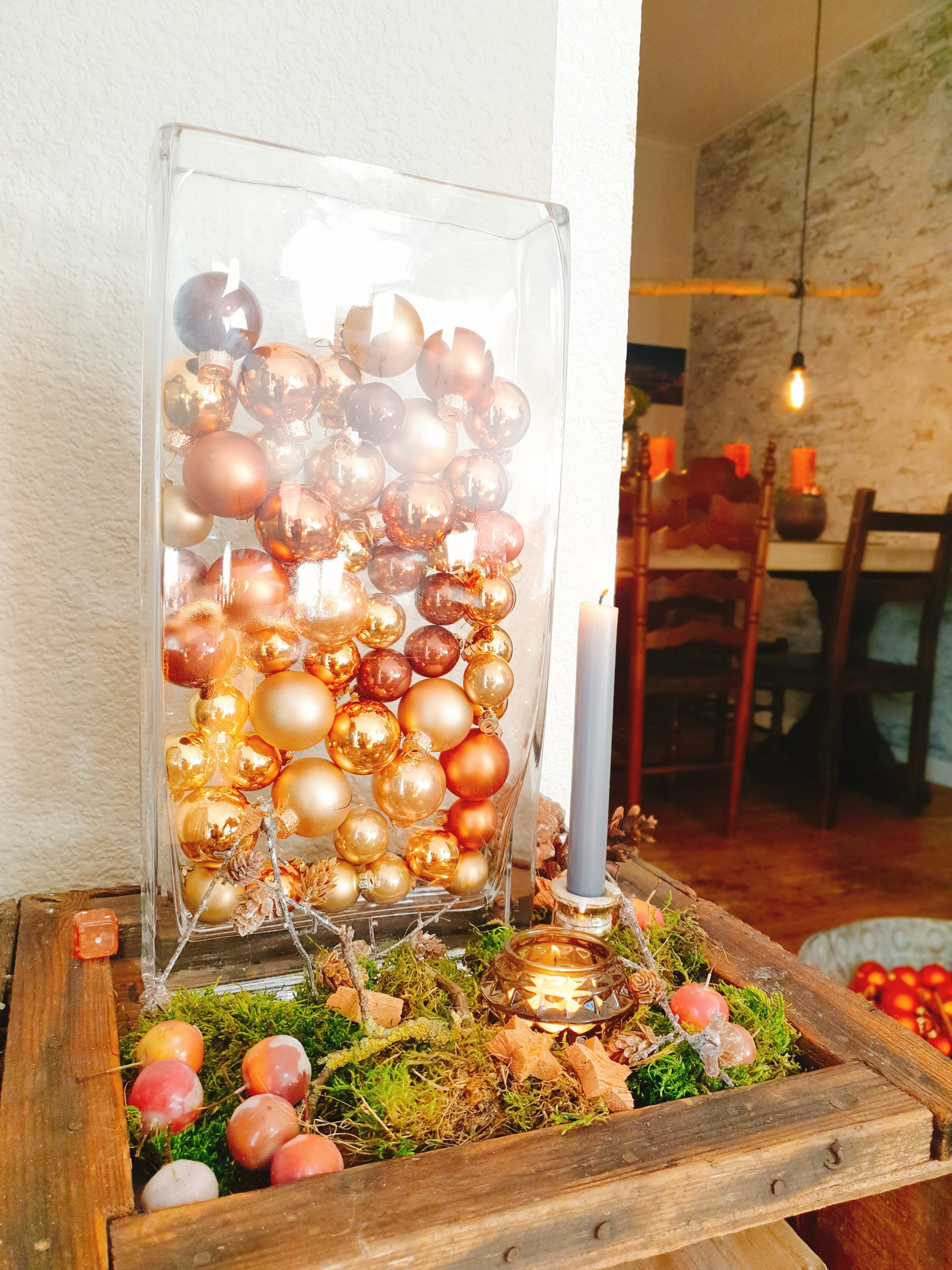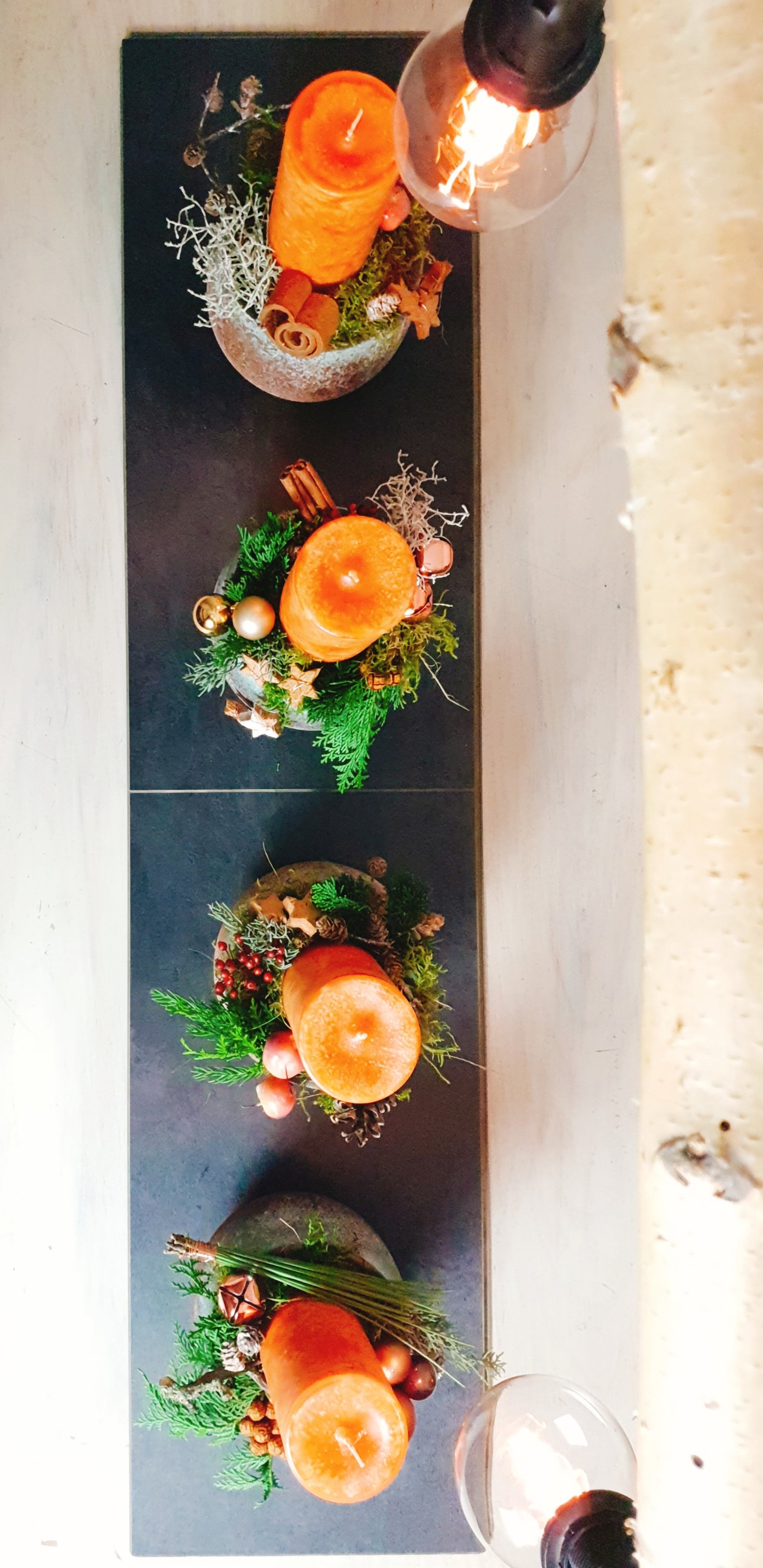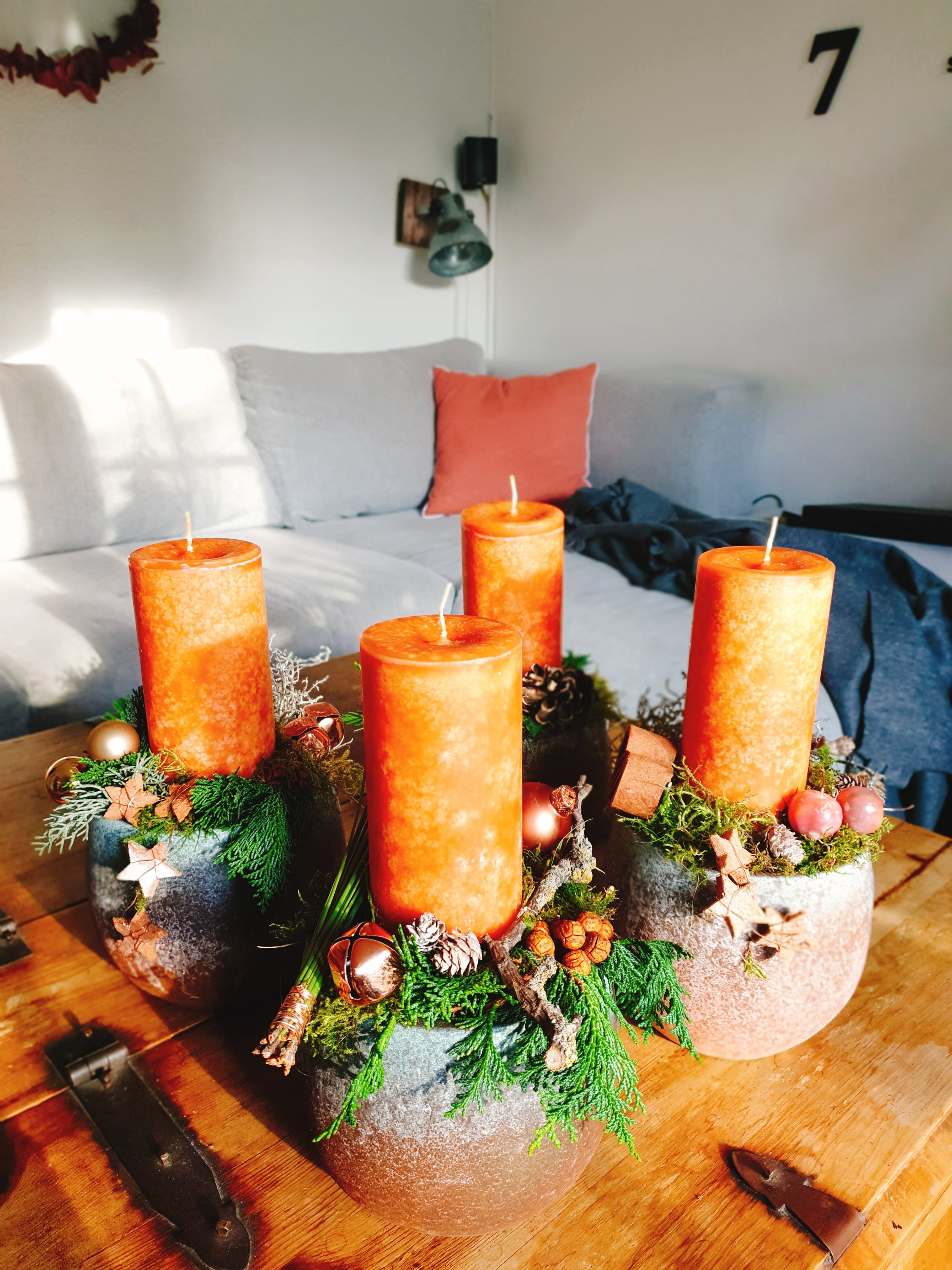In diesem Jahr bin ich meiner Lieblingsfarbe treu geblieben. Orange ist zu Advent und Weihnachten ja eher ungewöhnlich, die meisten lieben in dieser Zeit ihre Deko in klassischem rot oder in edlem weiß und gold. Das mag ich auch.