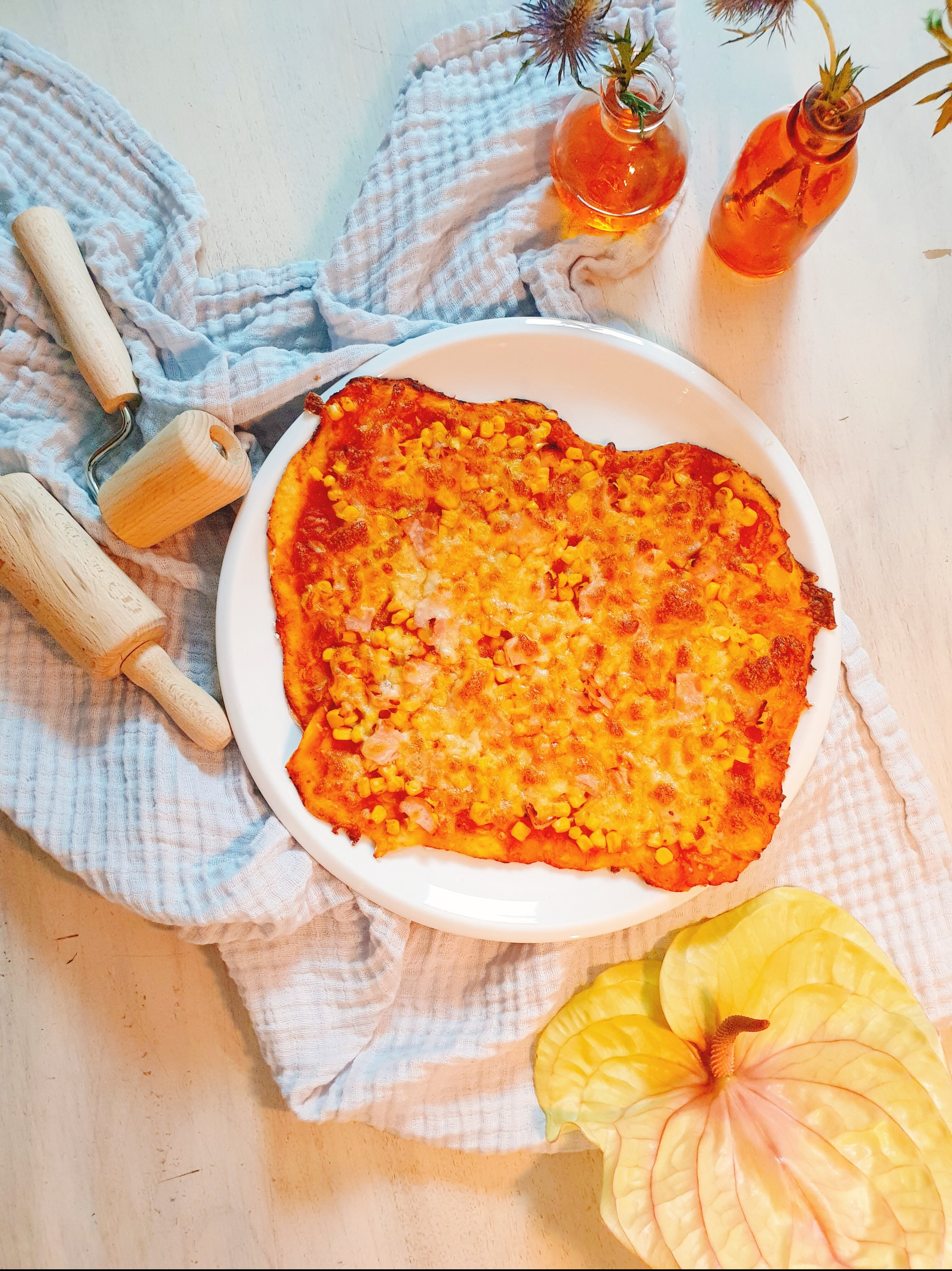 Die Pizza bei 180 °C ca. 15 – 20 Minuten backen, bis der Teig am Rand knusprig und der Käse leicht gebräunt ist.