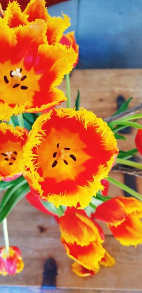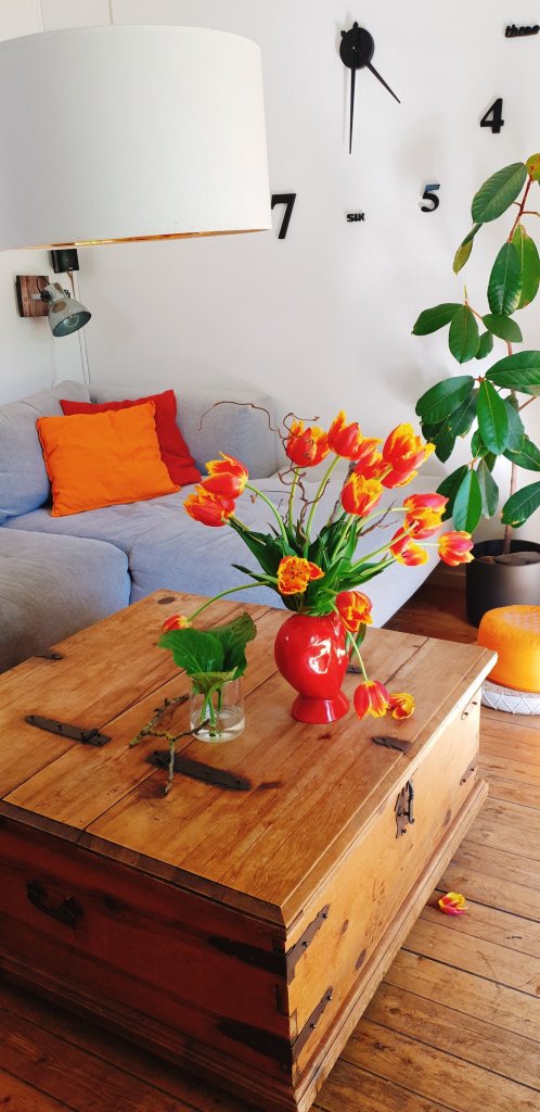 Tulpenzeit. Man könnte verrückt werden darüber, wie viele wunderschöne Sorten es gibt. Ich kriege nicht genug, das Haus ist voll mit Vasen voller Tulpen. Als würde es nie wieder welche geben.