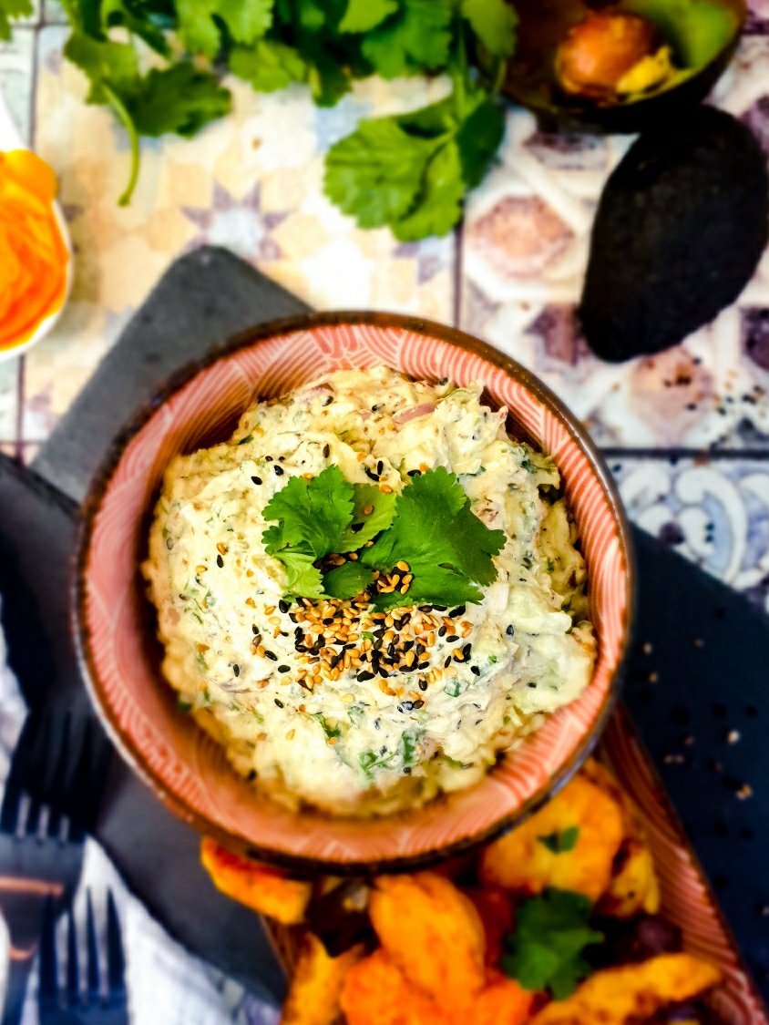 Der Hauptfigur in meinem diesem Hummus spielt die Avocado. Da aber das Tahin als wichtigster Nabendarsteller mitspielen darf und auch richtig gut zur Geltung kommt (Sesam ist 4fach vertreten: Tahin, Sesamöl, blonder und schwarzer Sesam), ermächtige ich mich hiermit für mein Rezept des Titels