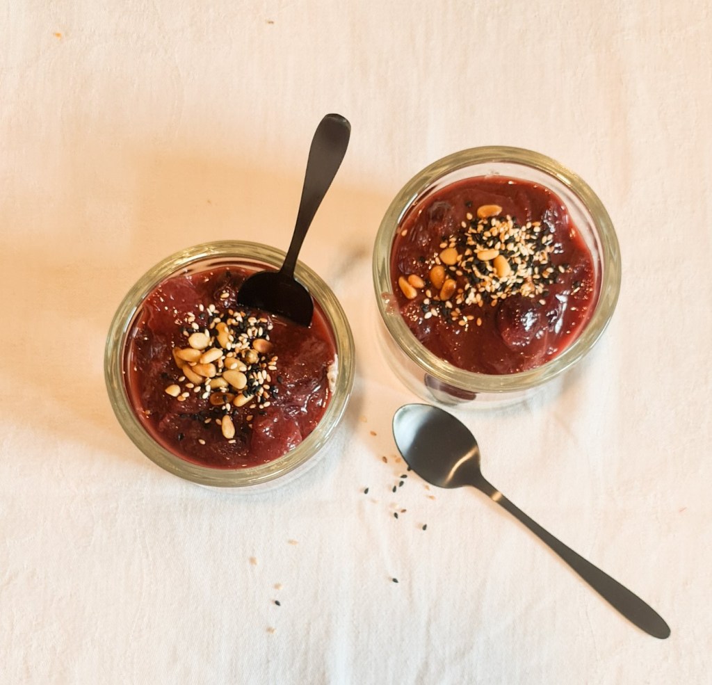 Auf der Suche nach einem Blitz-Dessert oder einem gehaltvollen süßen Frühstück seid ihr hier noch dazu gerade richtig gelandet. Kompott geht immer. Mit einer Lage schnellem Joghurt wird es auch noch schön cremig.