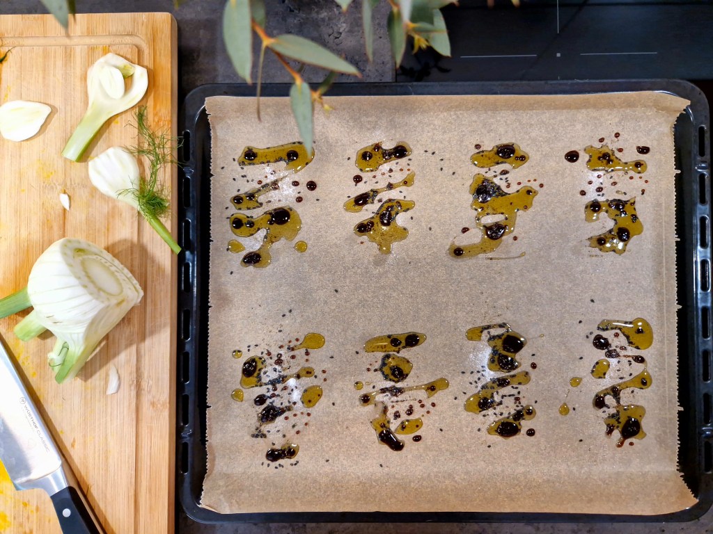 Zwiebeln waren mir zu langweilig. Ich versuchte Fenchel und Lauch und variierte auch mit Sirup, Nüssen und Samen. Zwischenzeitlich habe ich auch Broccoli (Kids-Variante) und Radiccio (Knaller!) ausprobiert, hierzu habe ich leider keine Fotos. Jedenfalls ist dies eine ganz einfache und schnelle Zubereitungsweise für kleine herzhafte oder auch süße Snacks, bei denen ihr nichts falsch machen und mit den Zutaten experimentieren könnt! Also nichts wie ran!