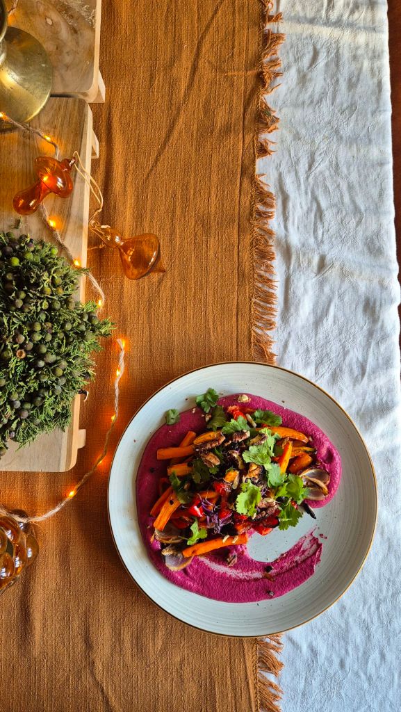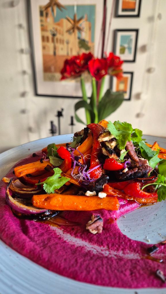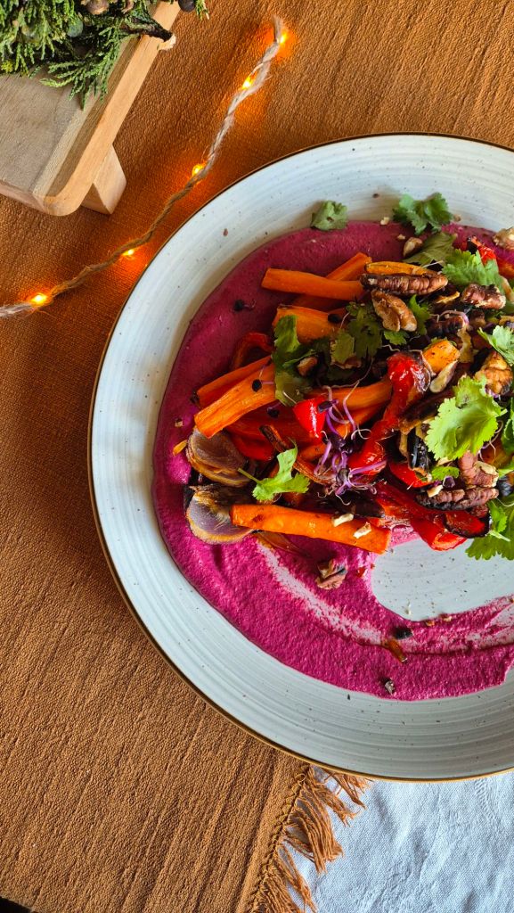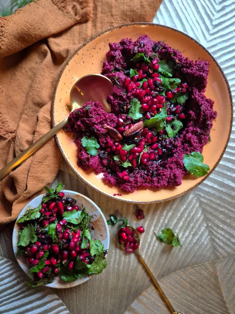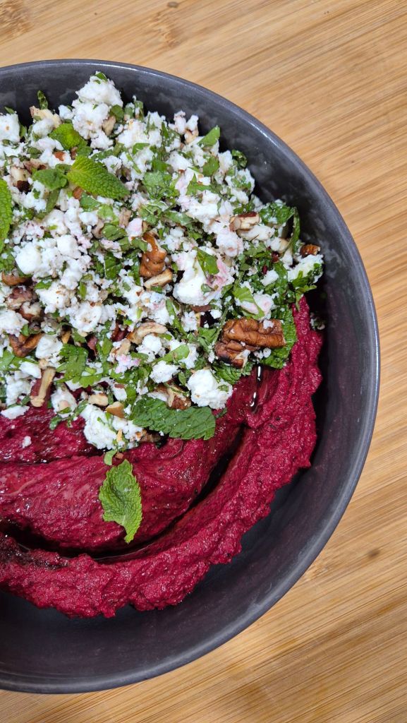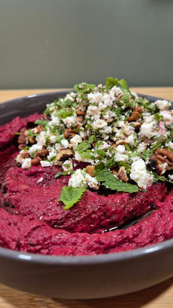 Bei orientalischen Mezze (Tapas / Vorspeisen) darf klassisches Muhammara aus Paprika und Walnüssen nicht fehlen. Hier darf ich euch die beste Freundin vorstellen: mit gerösteter Roter Bete und Pekannüssen.