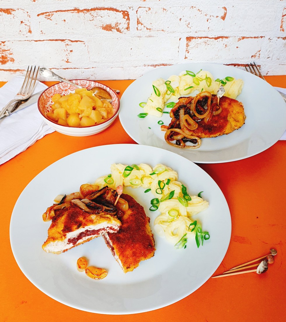 Cordon Flönz oder Himmel un Ääd mit Schnitzel