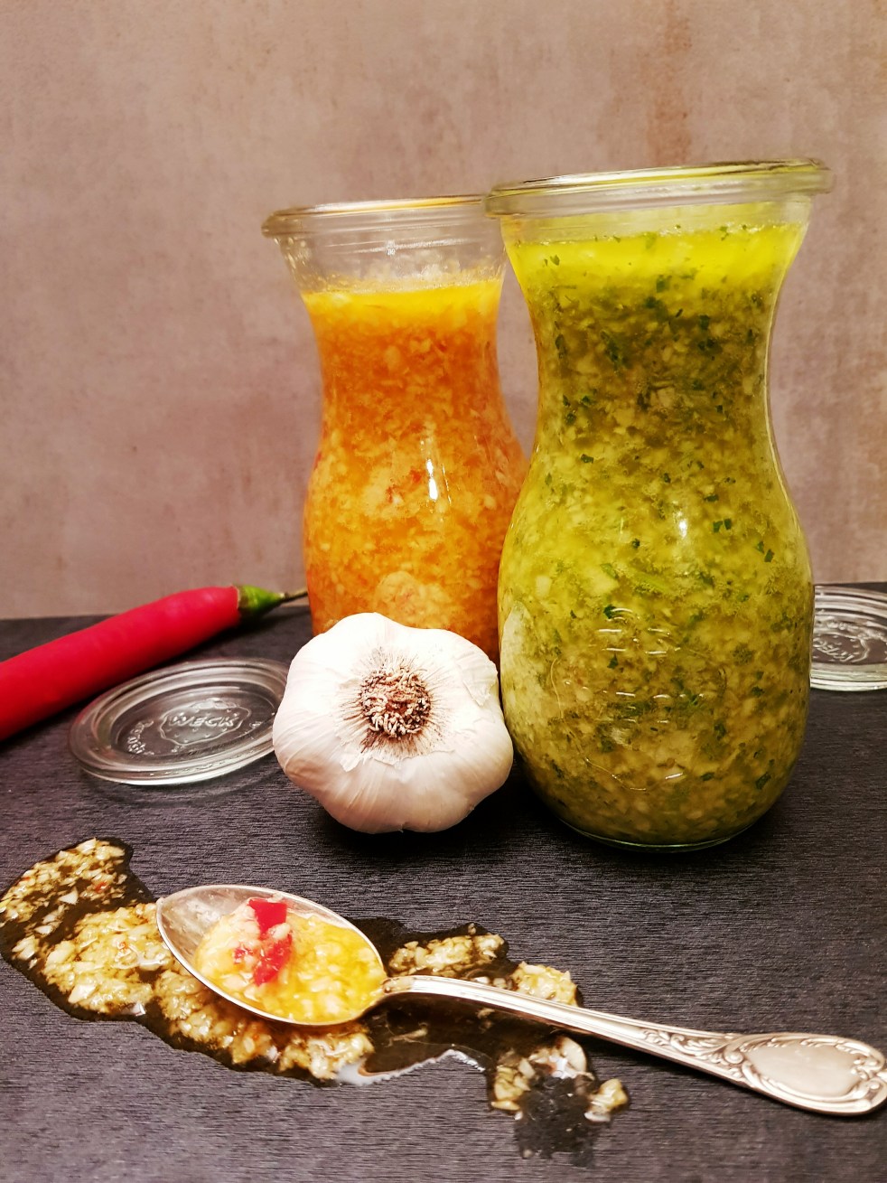 Ohne Knofi geht es nicht im Hause der Frau KatE. Fast jedes Gericht wird hier damit gepimpt. Die Liebe zu Spanien und der mediterranen Küche ist wahrscheinlich Schuld daran. Der Mallorquiner würde ja niemals auf die Idee kommen, sich Butter auf die Stulle zu schmieren. Er mag traditionell Olivenöl auf seinem gerösteten Brot, gerne mit Knoblauch- und Tomaten-Abrieb… Weiterlesen Knoblauchöl deluxe & Mojo-Sauce