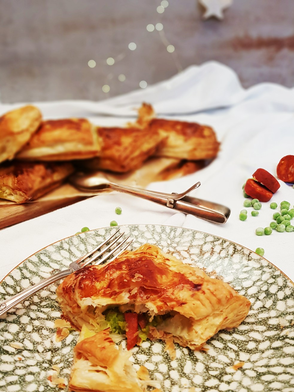 Es gibt mal wieder einen FastPost am Dienstag: Blätterteigtaschen mit Erbsen und Chorizo 2 Rollen Blätterteig aus dem Kühlschrank nehmen. Den Backofen auf 200°C vorheizen. Für das Erbsenpüree 1/2 Packet tiefgefrorener Erbsen in einem kleinen Topf mit Wasser bedecken und 2-3 Minuten kochen lassen. Das Wasser fast komplett abschütten, salzen und pfeffern und 1 Hand… Weiterlesen Mediterraner Snack mit Chorizo und Erbsenpüree