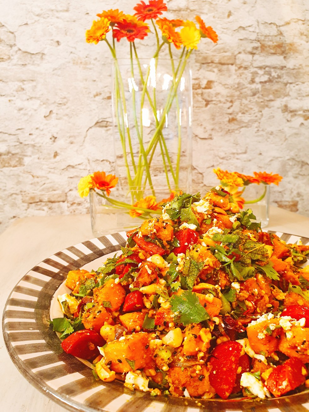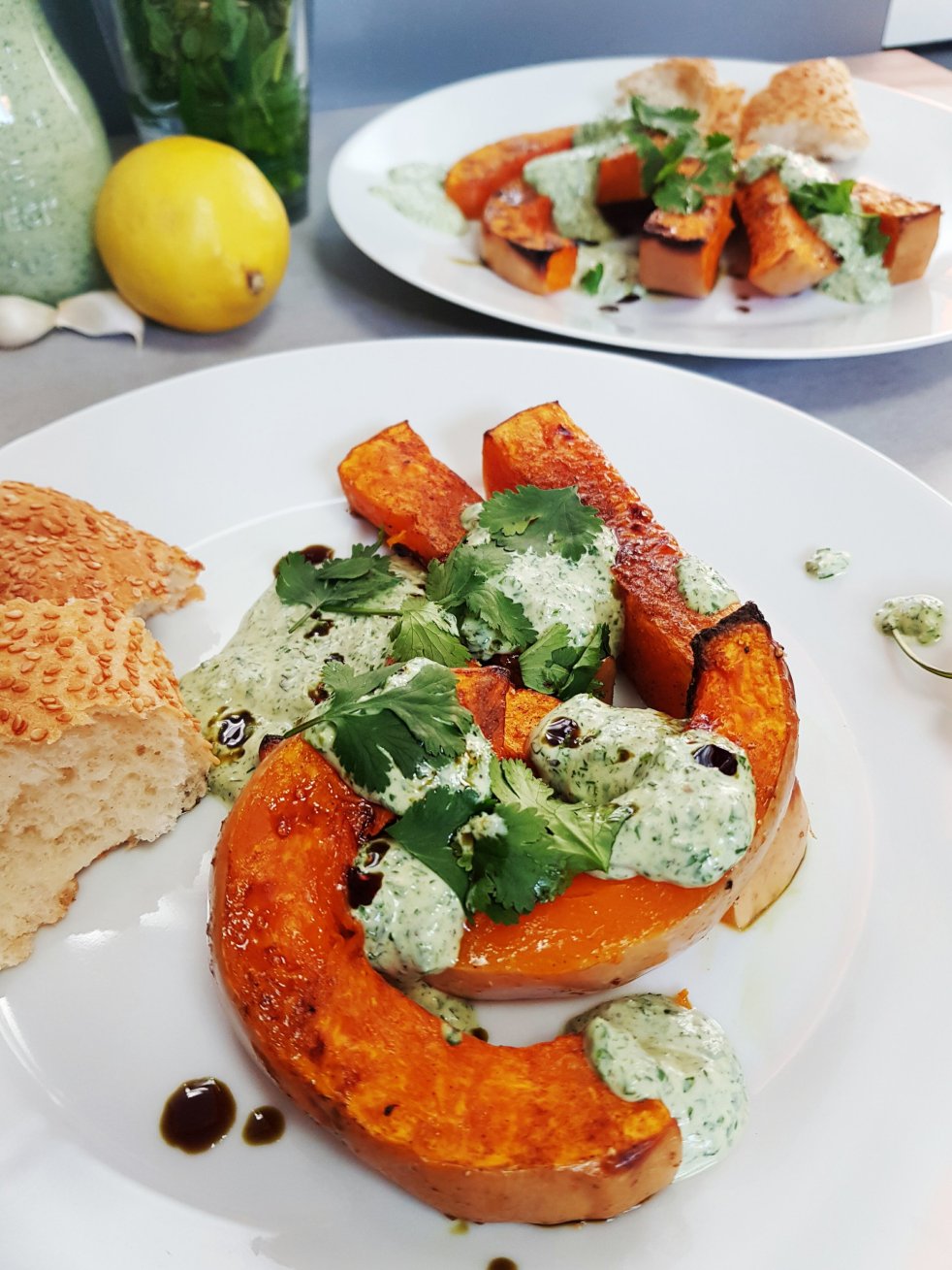 Karamellsüß gerösteter Butternuss-Kürbis & orientalisch-frischer Sumach-KräuterJoghurt {mit einem Appell für intuitives Essen}