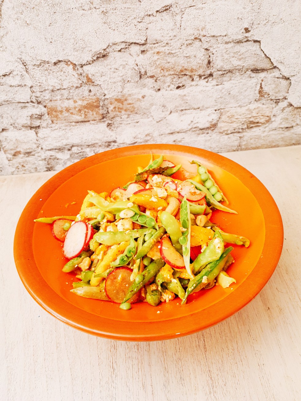 Zuckerschoten-Salat mit Radieschen, Mango und Cashews