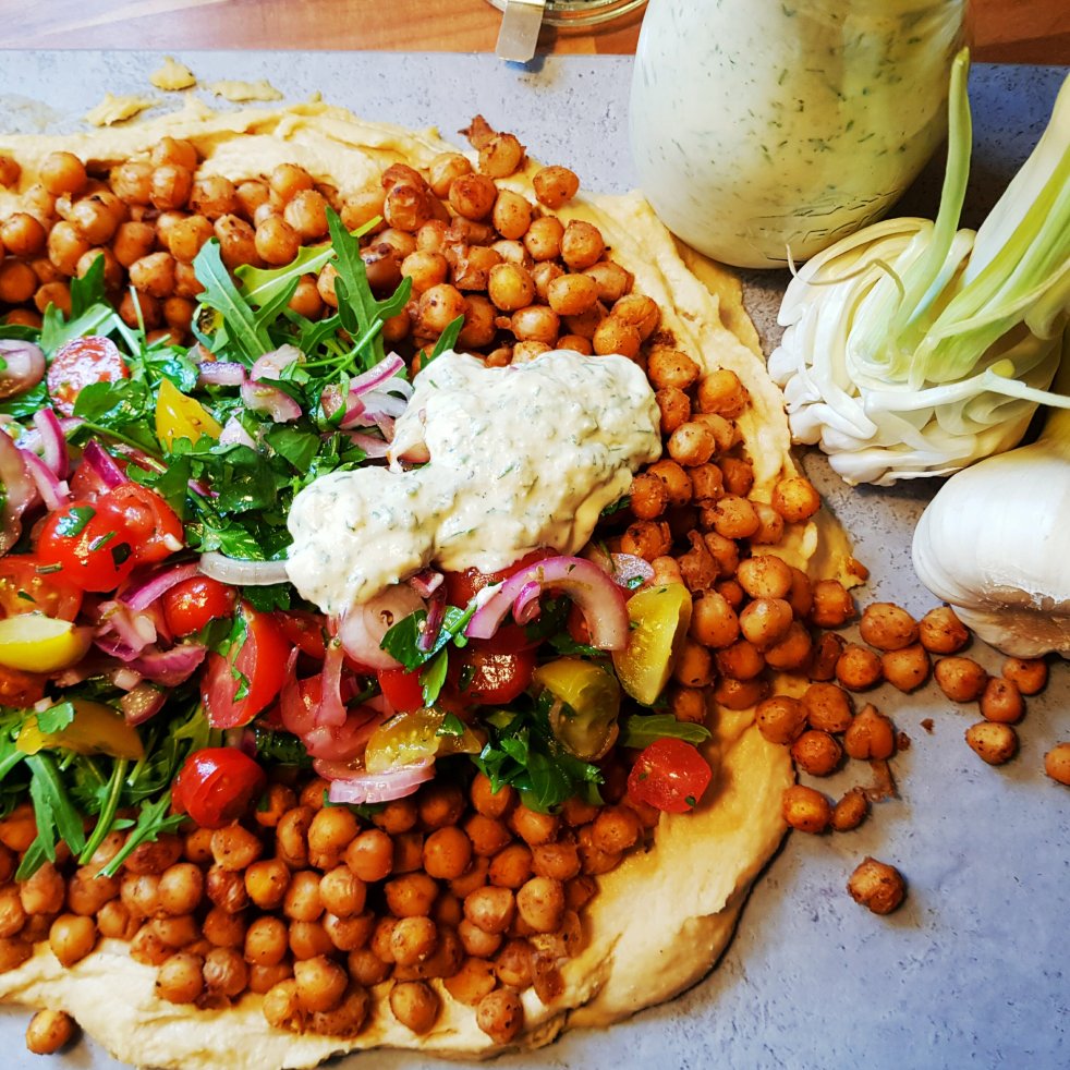 Hier hätte ich einen richtig leckeren Hummus für Euch. Oder einen Dip. Oder eine Sauce. Ganz, wie ihr mögt. Auf jeden Fall aber mit viel Dill und frischem Knoblauch. SO GUT! Und ganz easy!!