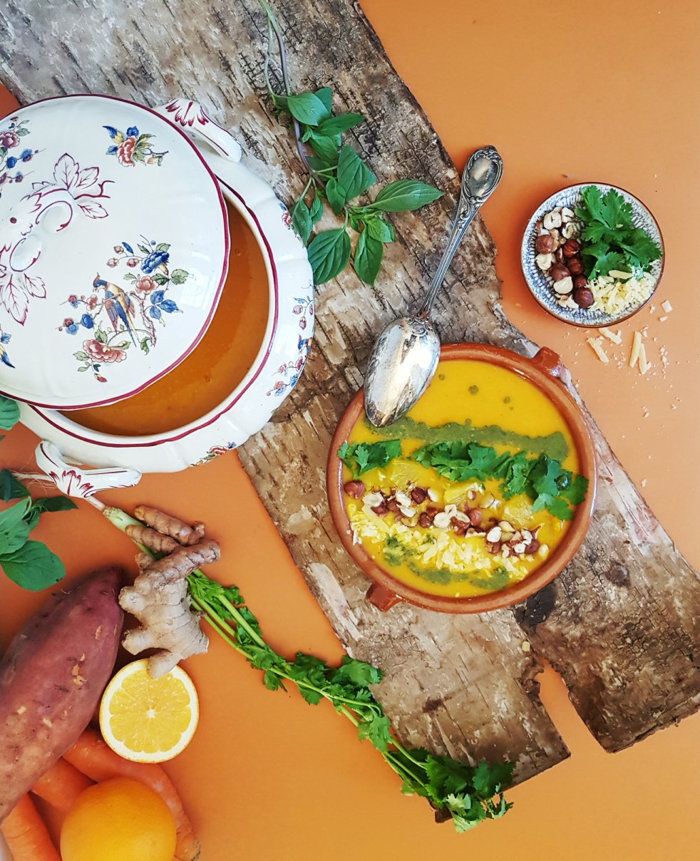 Suppe geht immer, oder?! Diese Kürbissuppe betört durch ihre cremigen Röstaromen und kickt Augen und Zunge zusätzlich mit ihren hübschen delikaten Toppings, die jede*r individuell wählen kann. Kürbis, der nach Sommerurlaub schmeckt. Wenn das mal nicht den Winterblues kickt!