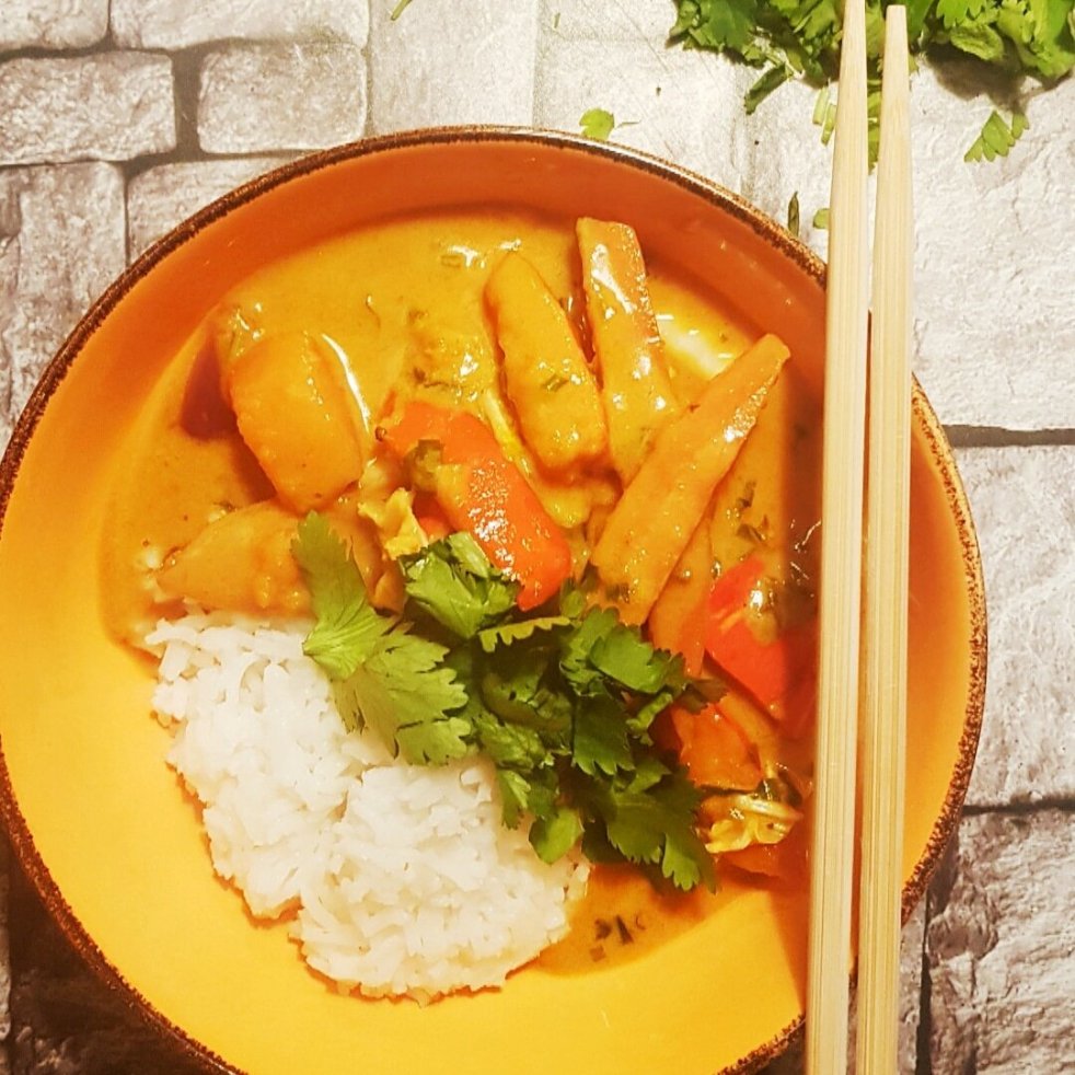Dieses Gemüsecurry ist einfach toll: es ist blitzschnell und ganz einfach zuzubereiten, kommt ohne Schnickschnack aus und ist damit das perfekte Gericht unter der Woche. Dabei schmeckt es herrlich cremig und würzig, nicht zu scharf und kommt mit einer frischen Note durch Limettensaft und Koriander. Und das allerbeste: es ist wunderschön orange und streichelt neben der Seele auch den Augen. Also nichts wie ran an den Wok!