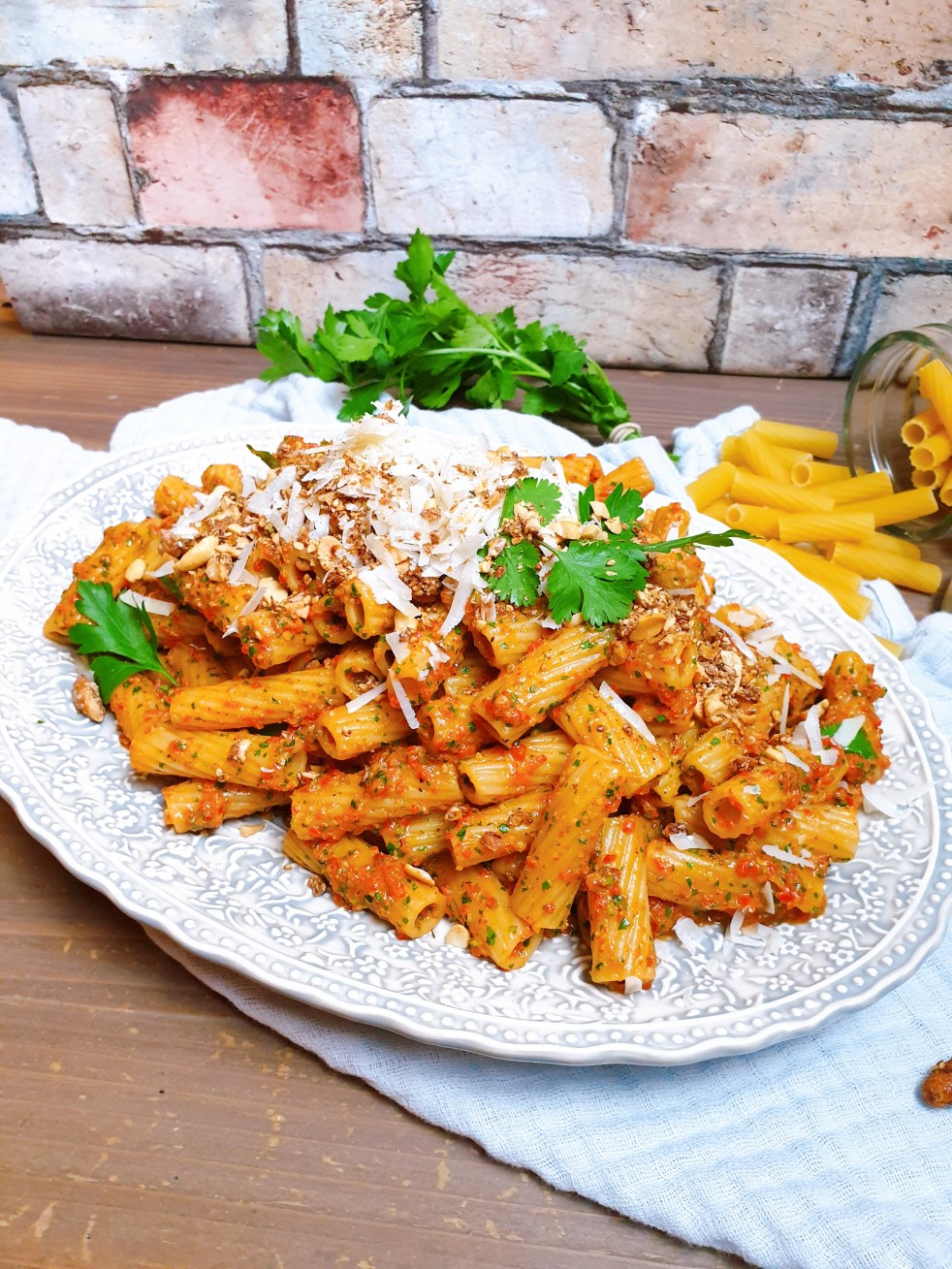 Ein Pesto ist schneller gemacht als die Pasta gekocht. Vergesst fertiges Pesto aus dem Glas und versucht mein frisches, süßrauchigsauerscharfes Pesto mit extra Crunch! The next level ~🧡~