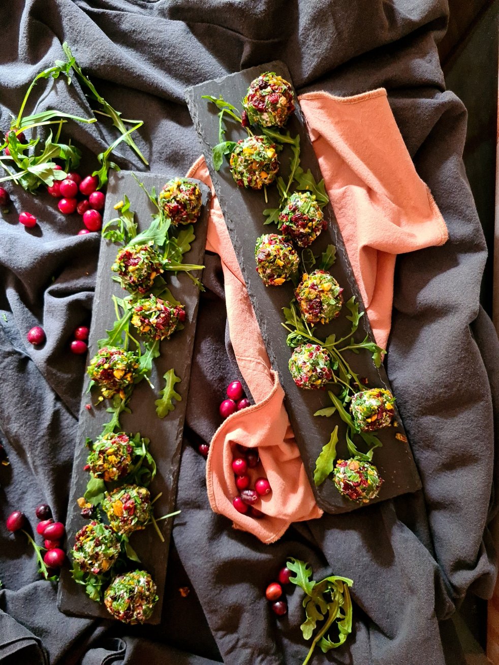 Amuse Bouche – Ziegenkäsebällchen mit Pistazien und Cranberries